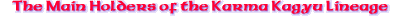 The main point of the Kagyu lineage is to have maintained perfectly intake the original vajrayana teachings given by Buddha Vajradhara to Saraha, Tilopa and other great Indian masters. This has been achieved through an unbroken succession of enlightened masters, each of whom transmitted perfectly the teachings of mahamudra and the 6 Yogas of Naropas to their spiritual heirs. Although these heart-lineages of the Karma Kagyu school are held by many outstanding masters today, the pre-eminent leaders of this tradition are its supreme head, HH the Gyalwa Karmapa and the two regents the 12th Kentin Tai Situpa and the 9th Goshir Gyaltsabpa. The 3rd Palpung Jamgon Kongtrul is also extremely important but is still very young and following his studies. There are in fact quite a few important young reincarnations, such as the Pawo, Kalu, Tringpa and Ongen Rinpoches, and many elder ones, such as the 9th Thrangu Rinpoche, who have brought the dharma to the West and to South East Asia. There is not the space here to describe them all adequately and it would be unfair to speak of some and not of others.