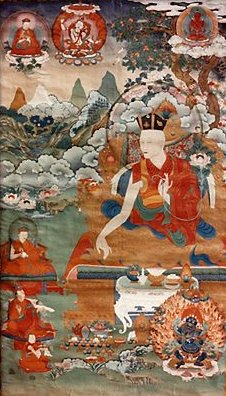 At one point the Jokhang temple, home of the famous Jowo image in Lhasa, was threatened by rising flood waters. A prophecy from Guru Rinpoche had foreseen this and predicted that only the Karmapa could do something to stop it, as it was caused by a powerful serpentine spirit (naga). The Lhasa authorities requested him to come. Being unable to leave immediately, he resolved the problem by writing a special letter to the naga and invoking the compassion of Avalokiteshvara. On arrival at Lhasa, the thirteenth Karmapa offered a white scarf (kata) to the Jowo image, and the arms of the statue changed position to accept it. They have been that way ever since. Dudul Dorje was also asked to consecrate a distant monastery. Unable to attend, he threw blessing grains in the air at Tsurphu at the moment of the consecration ceremony, and they were seen to shower down from the heavens hundreds of kilometers away at the monastery in question. Text reprinted with permission of Altea Publishing from Karmapa, by Ken Holmes. Copyright 1995 by Altea Publishing. Karmapa 1 2 3 4 5 6 7 8 9 10 11 12 13 14 15 16 17
